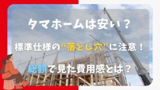 🏠ハウスメーカー選びのコツ タマホームの坪単価は本当に安い?標準仕様とオプション費用の落とし穴に注意! 「坪単価30万円台」って本当?実はあとから費用が増える落とし穴も…。タマホームの価格のリアルと、見積もりで確認すべきポイントを業界目線で解説。オプション・標準仕様の違いや口コミもあわせて紹介。初心者でもわかりやすく、後悔しない判断のコツが見えてきます。 2025.07.09 🏠ハウスメーカー選びのコツ