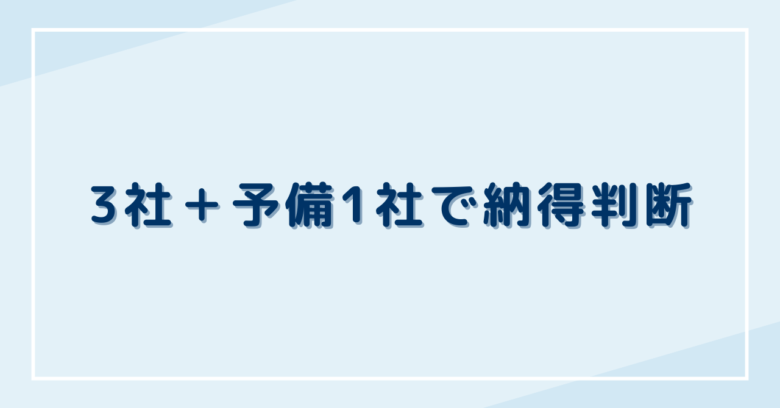 結論からお伝えすると、「3社+予備1社」がベストバランスです。